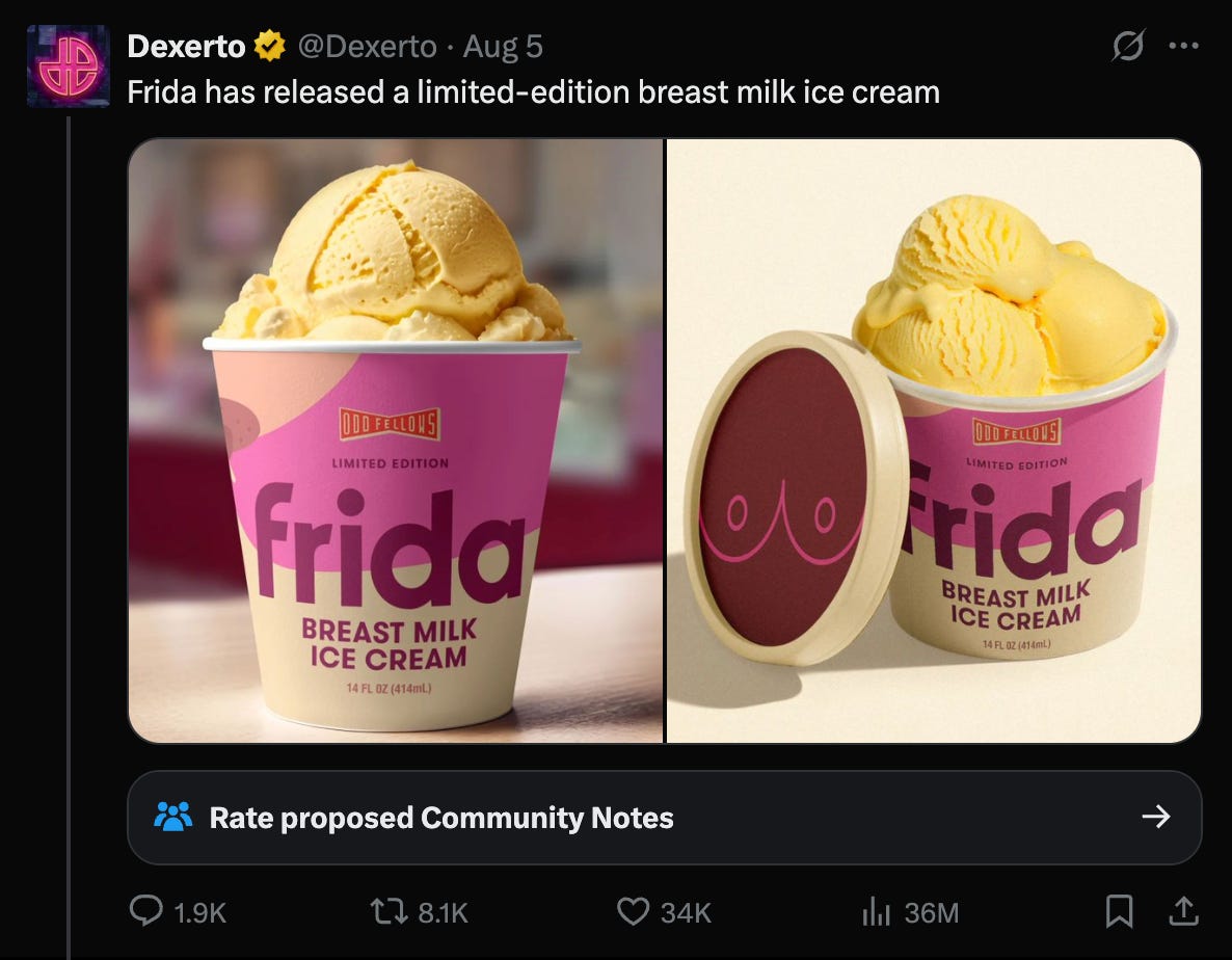 Ice cream company Frida launched “breast milk-flavored” ice cream.