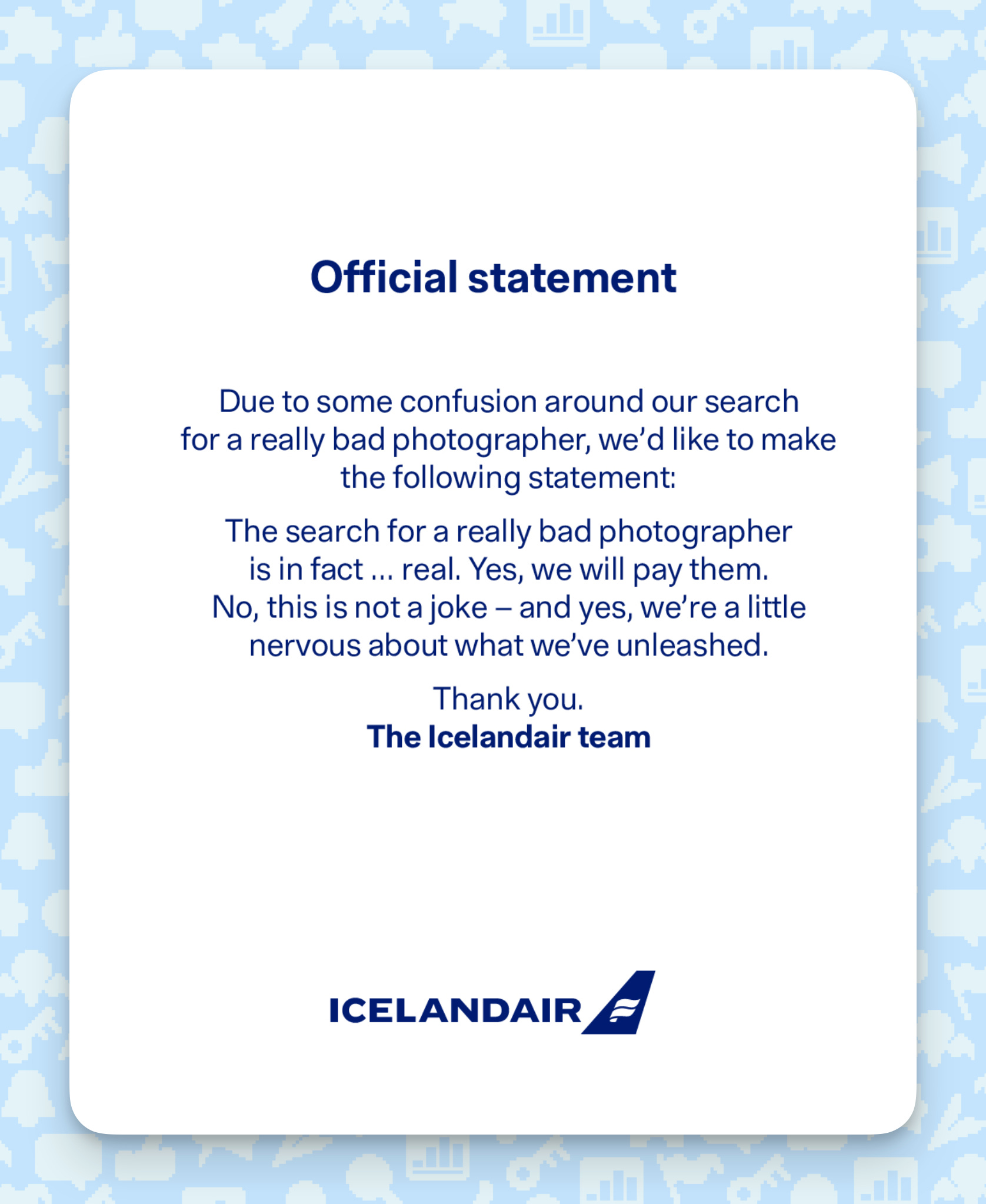 Icelandâs main airline just posted a real job opening looking for the WORST photographer alive.