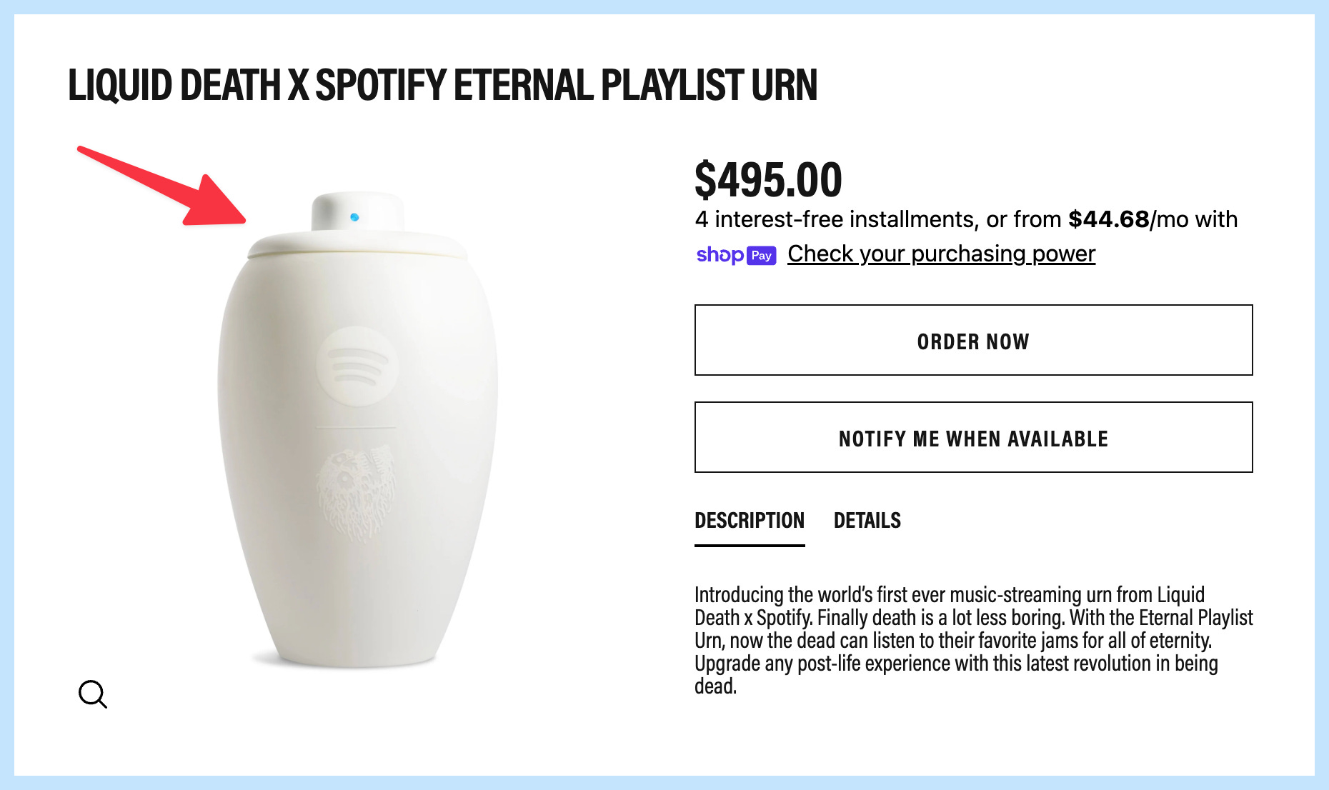 Spotify is selling a $495 urn