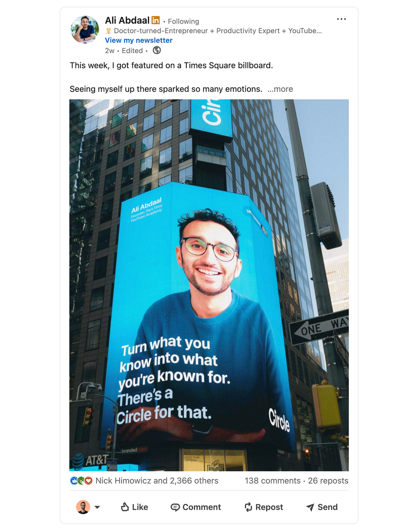 When someone takes a photo of your billboard and posts it to LinkedIn or Twitter - that’s when you win. Because that photo can reach thousands of people in your exact target audience.