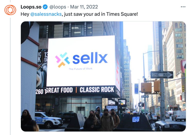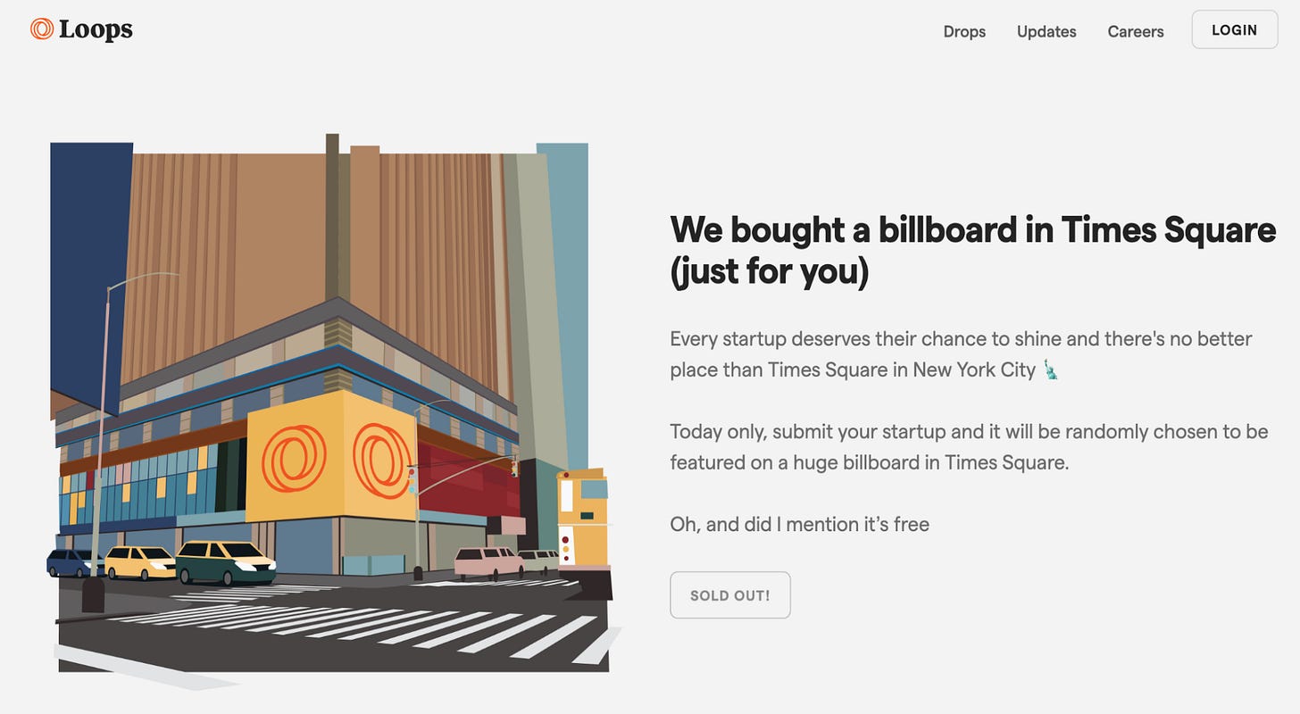 But then there’s companies like Loops - a tiny email startup - who spend $2K on a Times Square billboard and successfully generate hundreds of leads.