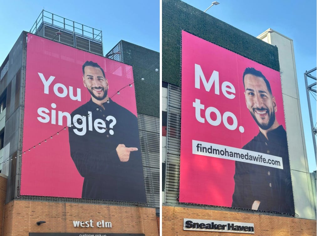 Muzz (a dating app) featured one real user - Mohamed Ibrahim - with “Help me find a wife!” on billboards. The campaign went viral because people snapped photos of a real person (not an actor) in such a creative way. News outlets covered it too.