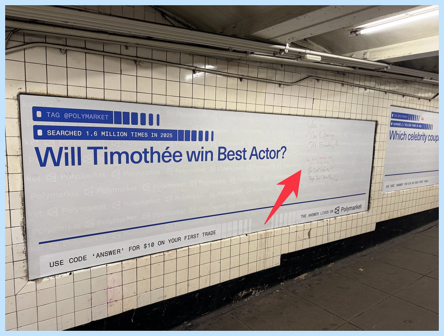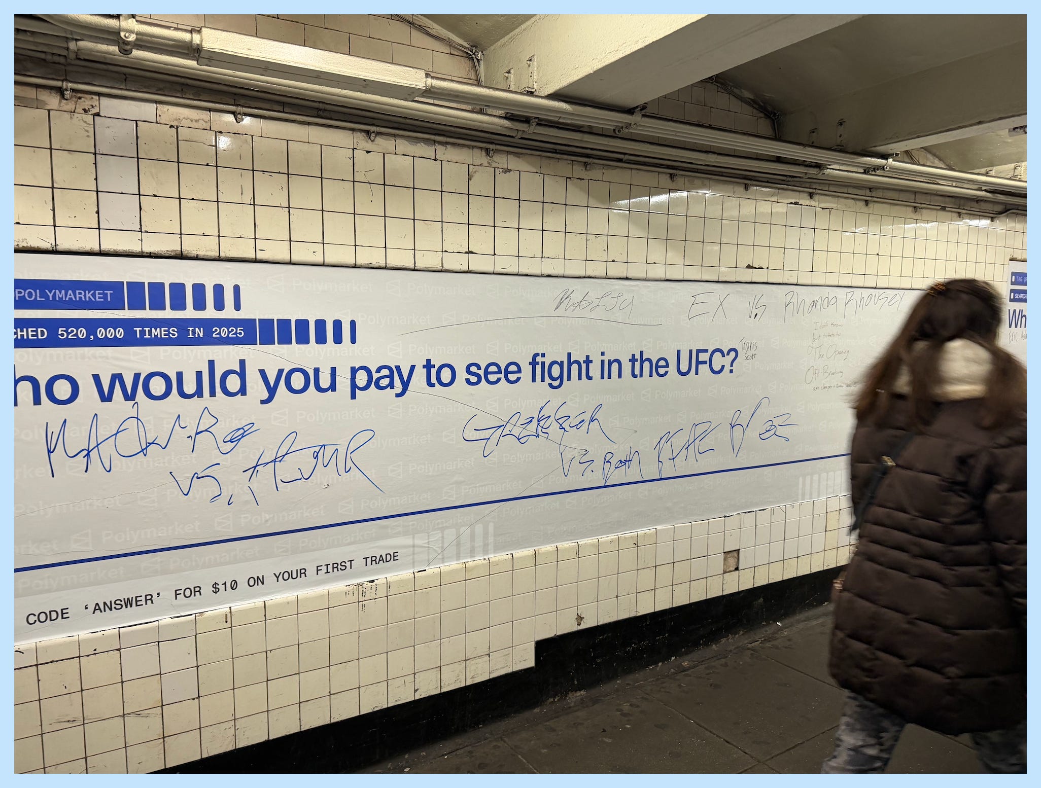 Now every time someone scribbles on a Polymarket ad ā theyāre making free content. Because people take photos and debate online.