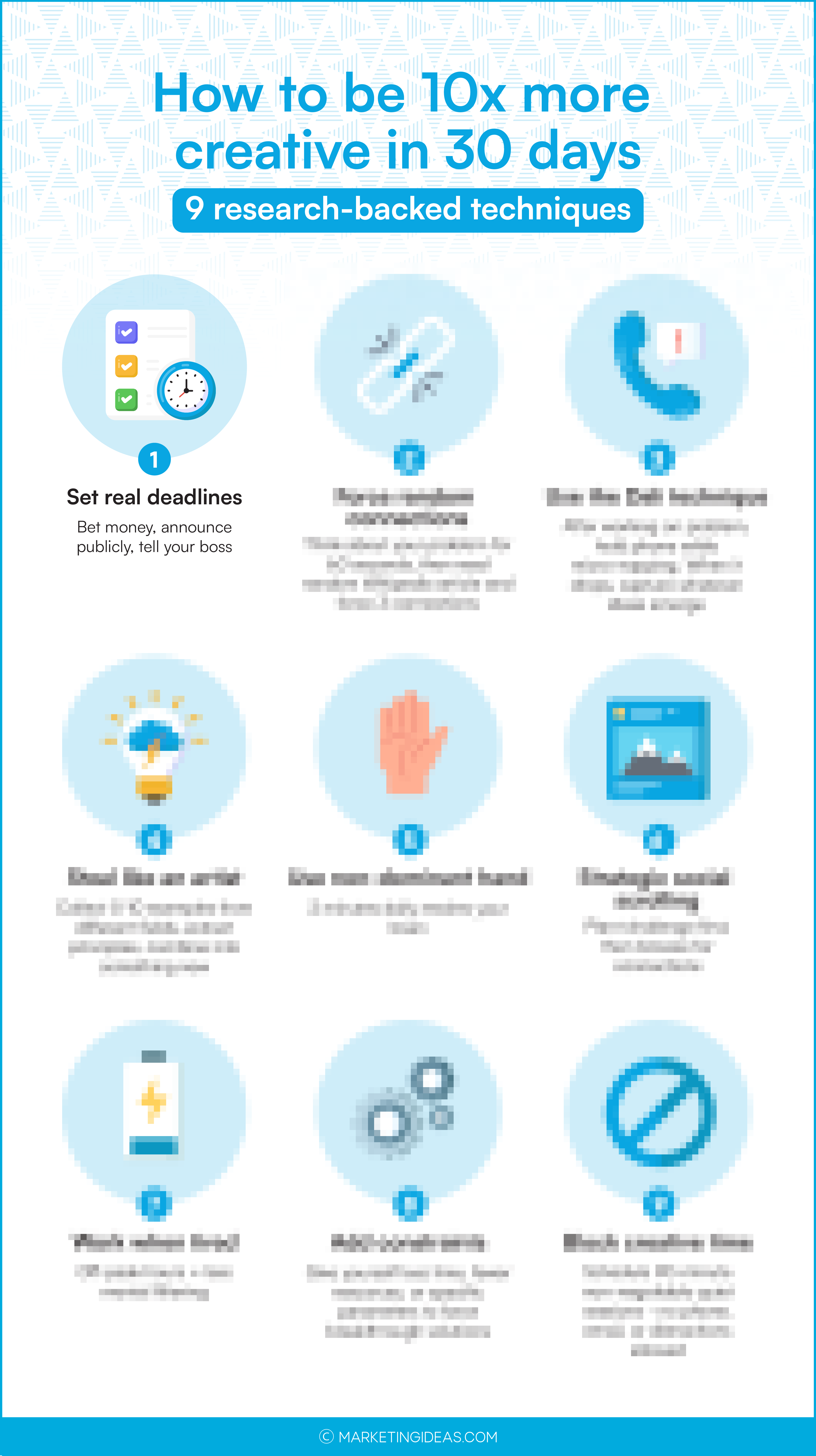 I went from generating maybe 1 decent marketing idea per week to having 3-4 solid concepts every single day. All because I stopped giving myself endless time and started giving myself impossible deadlines.