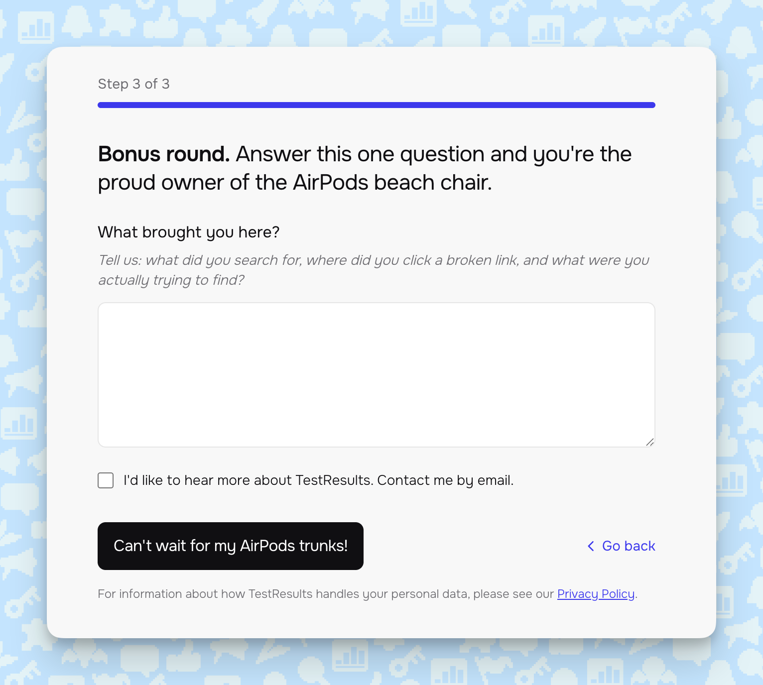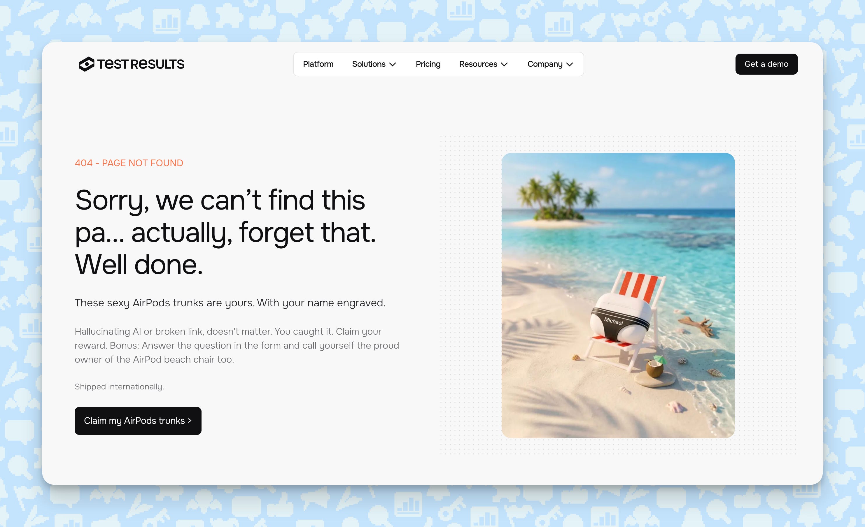 It’s a perfect flex for their audience. They sell a software testing product to people who love finding bugs. So when one of their users stumbles onto a broken link, that user basically IS their ideal customer. Might as well throw them a prize.