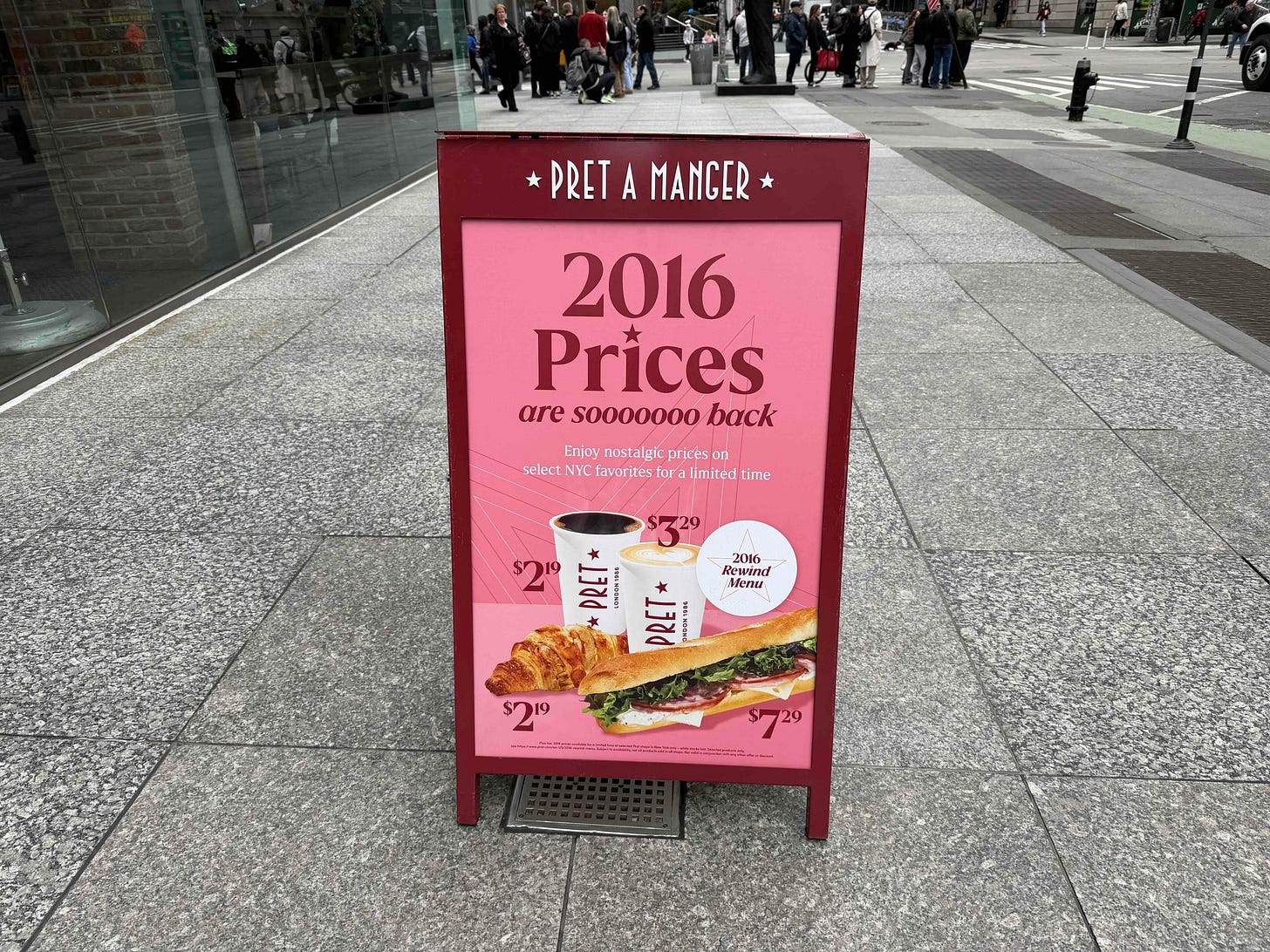 I spotted this Pret A Manger sign on a NYC sidewalk last week:
