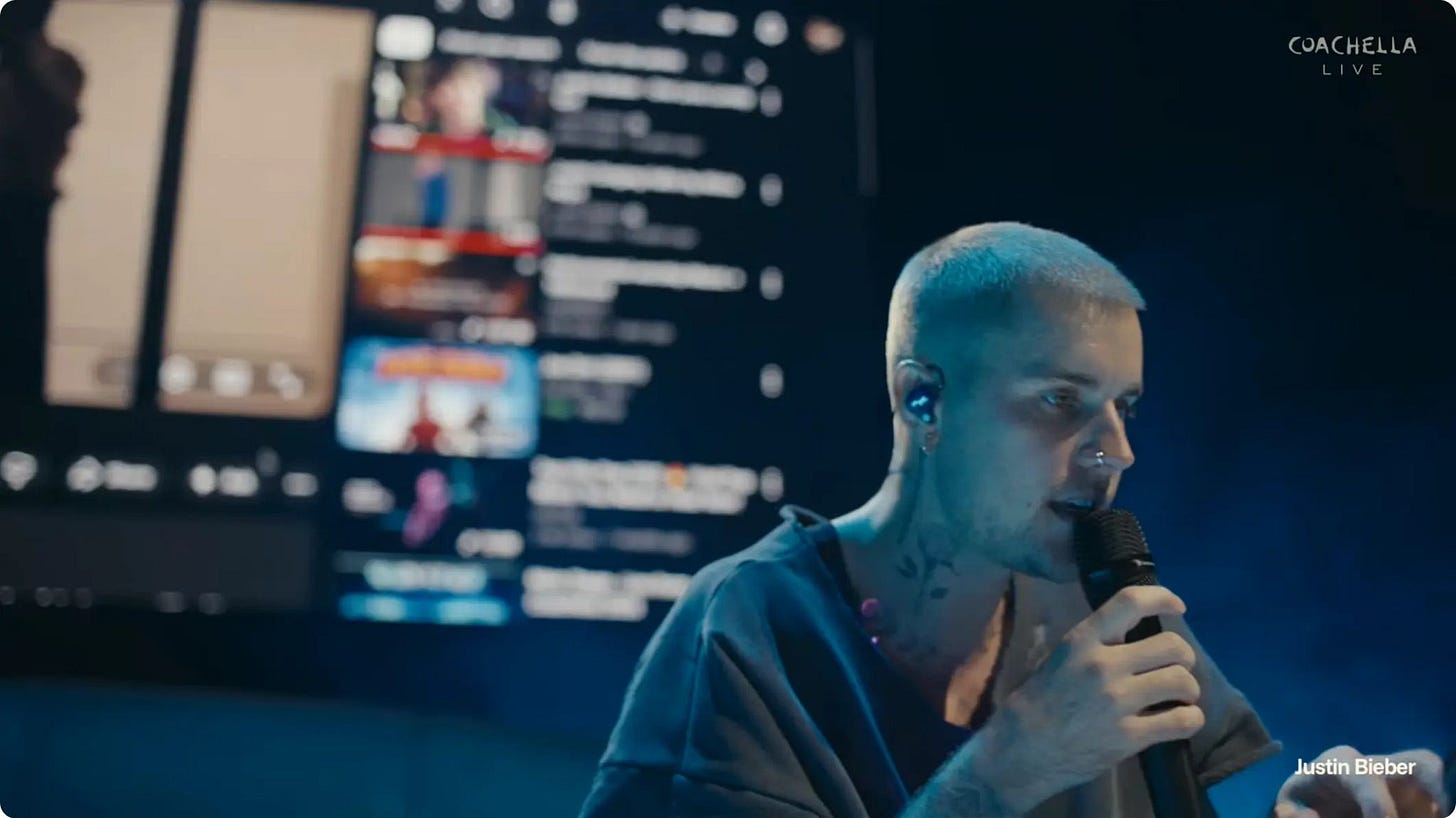Justin Bieber just did the same play on the biggest stage in the world, plugging his laptop into the Coachella screen to play "Baby" straight from YouTube, harmonizing with his 2009 self.