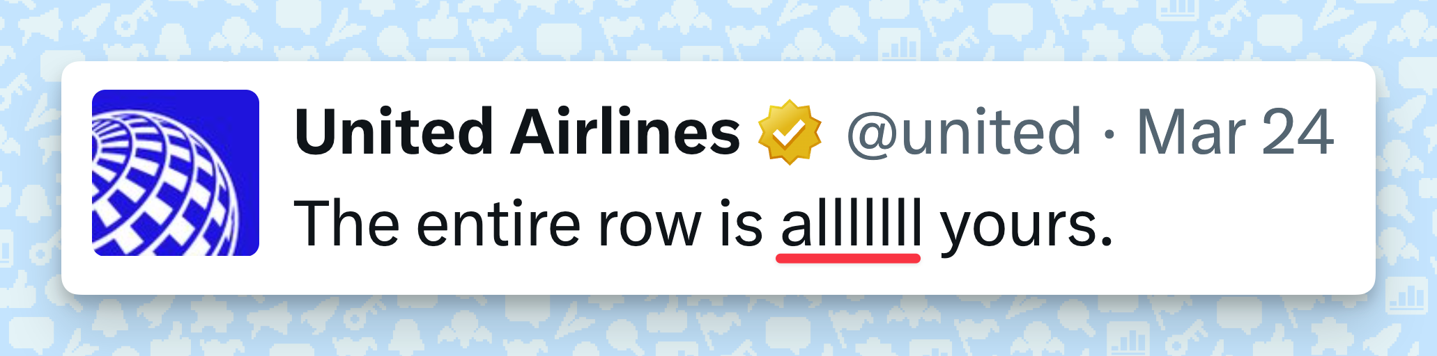 “The entire row is alllllll yours.”