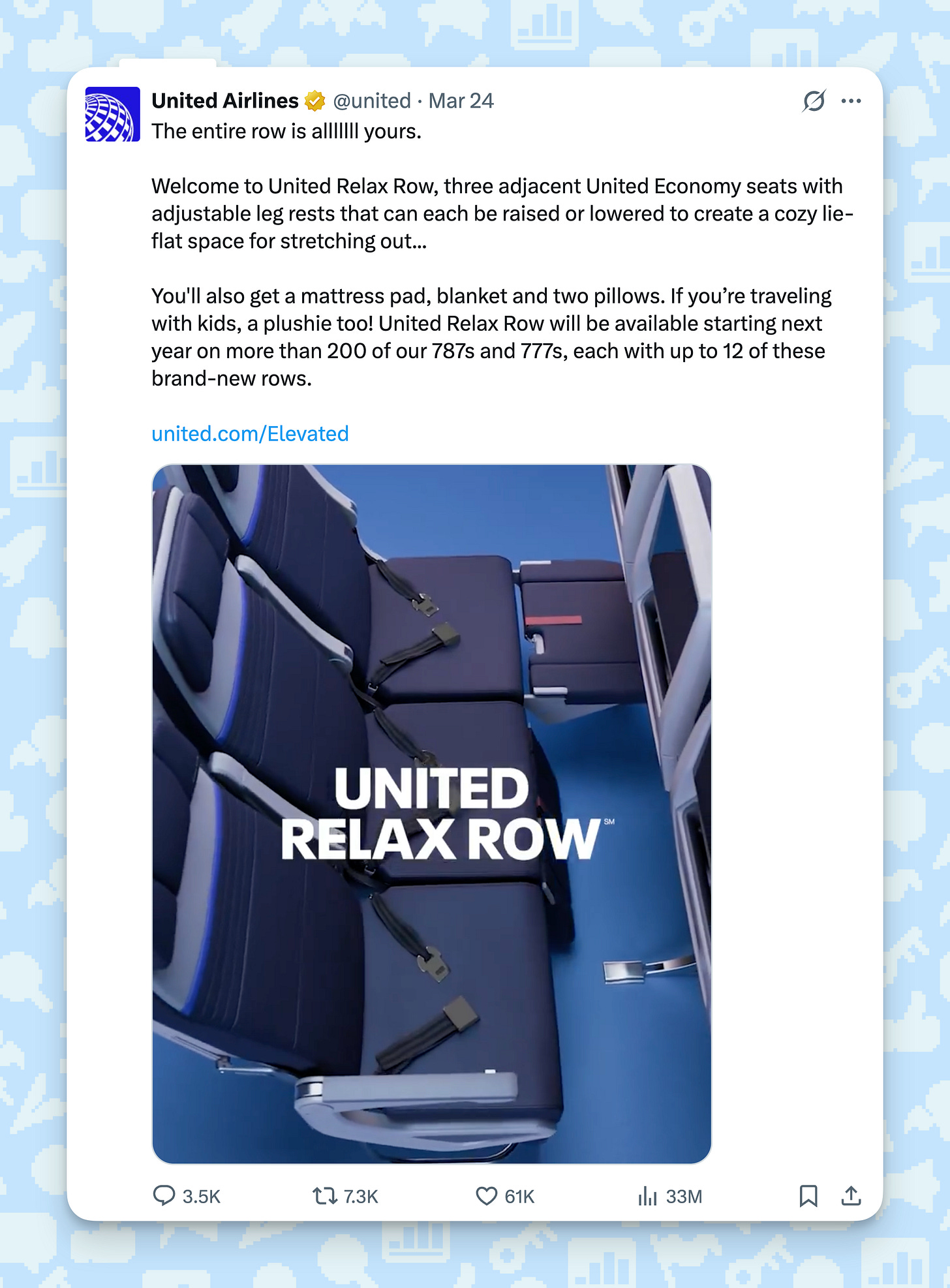 Last week, United Airlines broke the internet with something called the ‘Relax Row’ - three economy seats that can turn into a bed. Pretty cool.