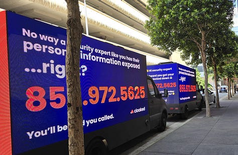 I love the copywriting here: “Think you’re safe? 855-75-CLOAK”. It’s super brief and crystal clear.