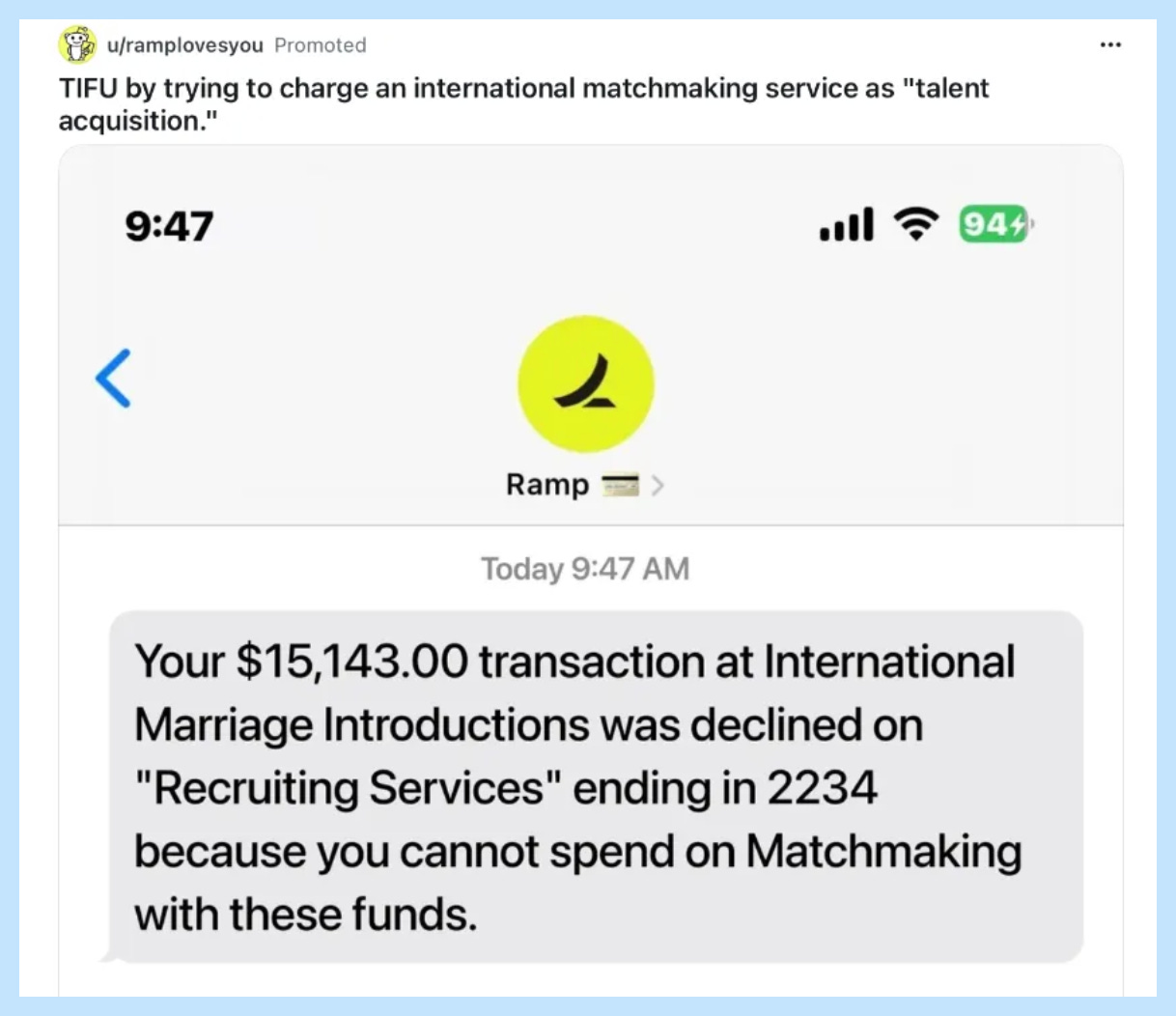 Ramp ran an ad using the TIFU (Today I F*cked Up) format: