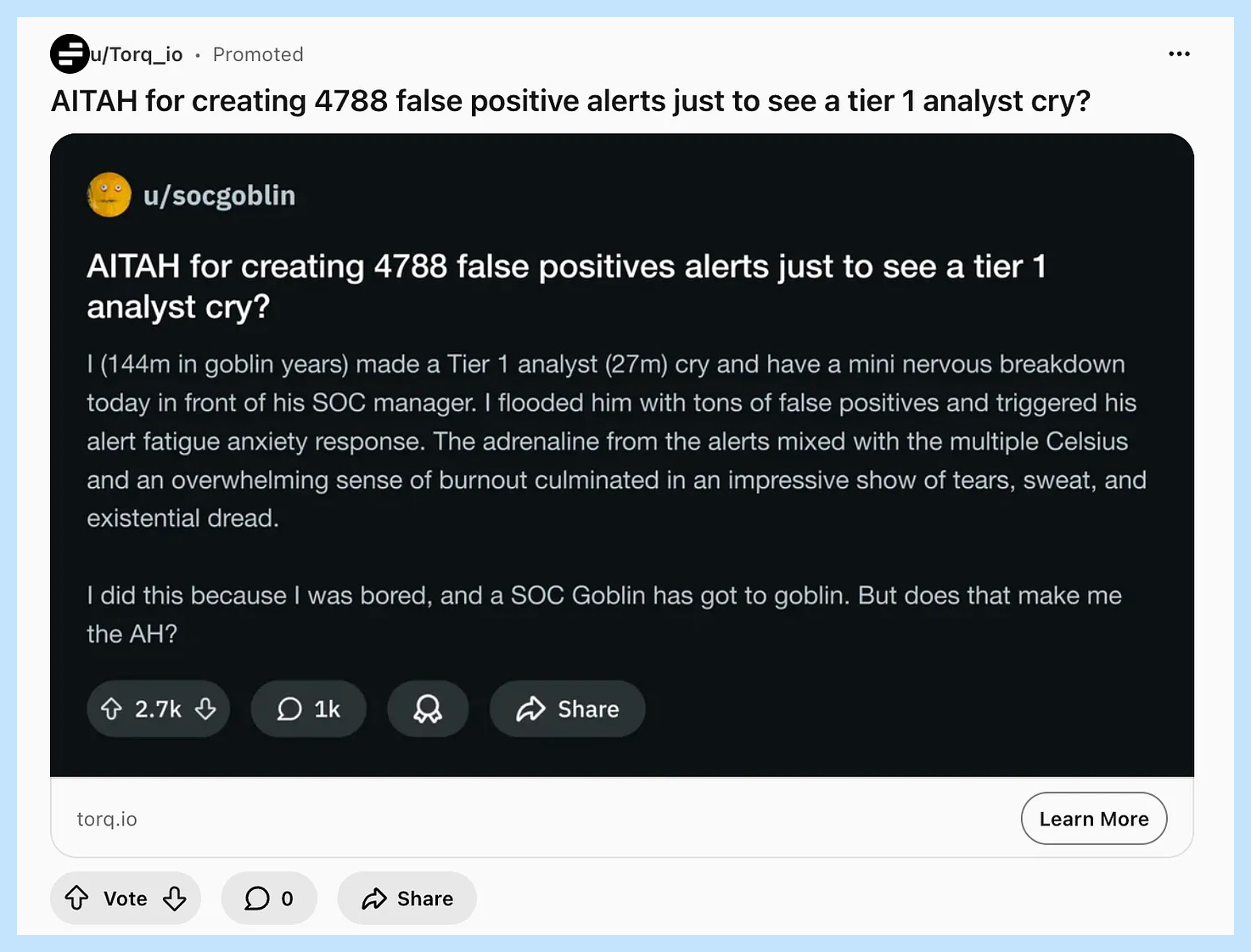 Torq used the AITAH (Am I The A**hole) format: