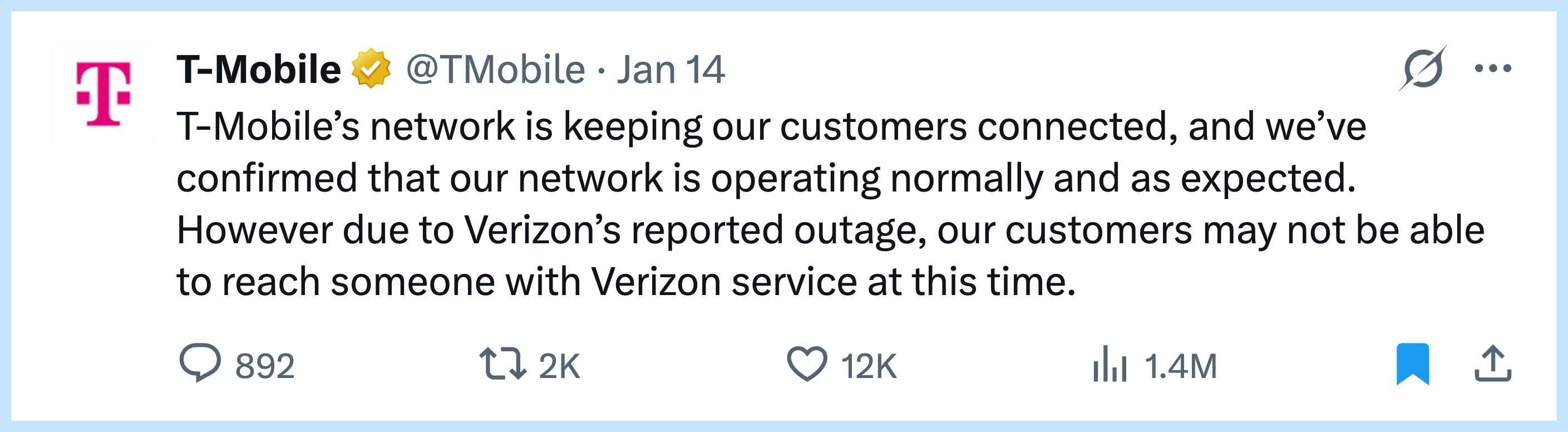 Both AT&T and T-Mobile jumped on the outage for some juicy RTM.