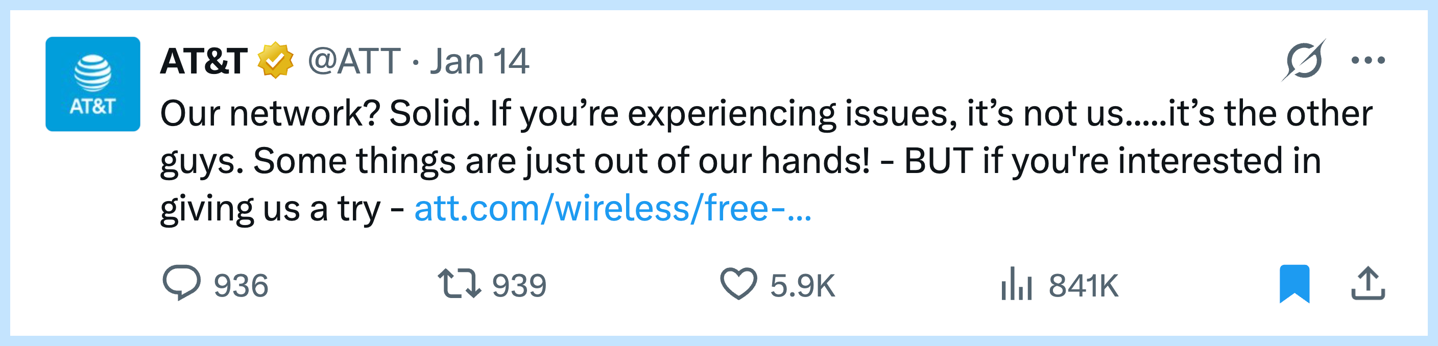 AT&T was wayyyyy too salesy. The replies roasted them.