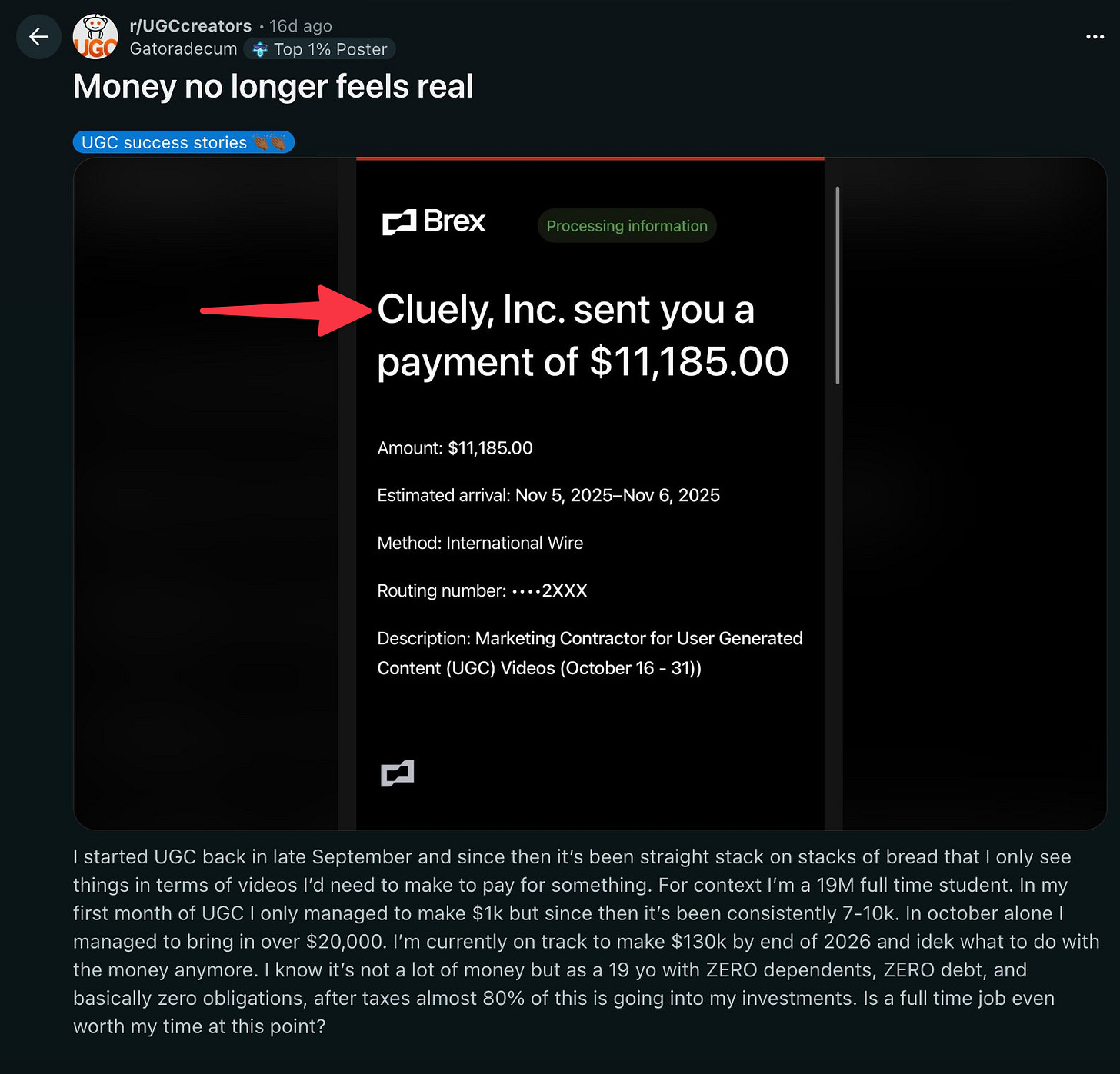 Someone posted a screenshot showing a HUGE payment from Cluely.
