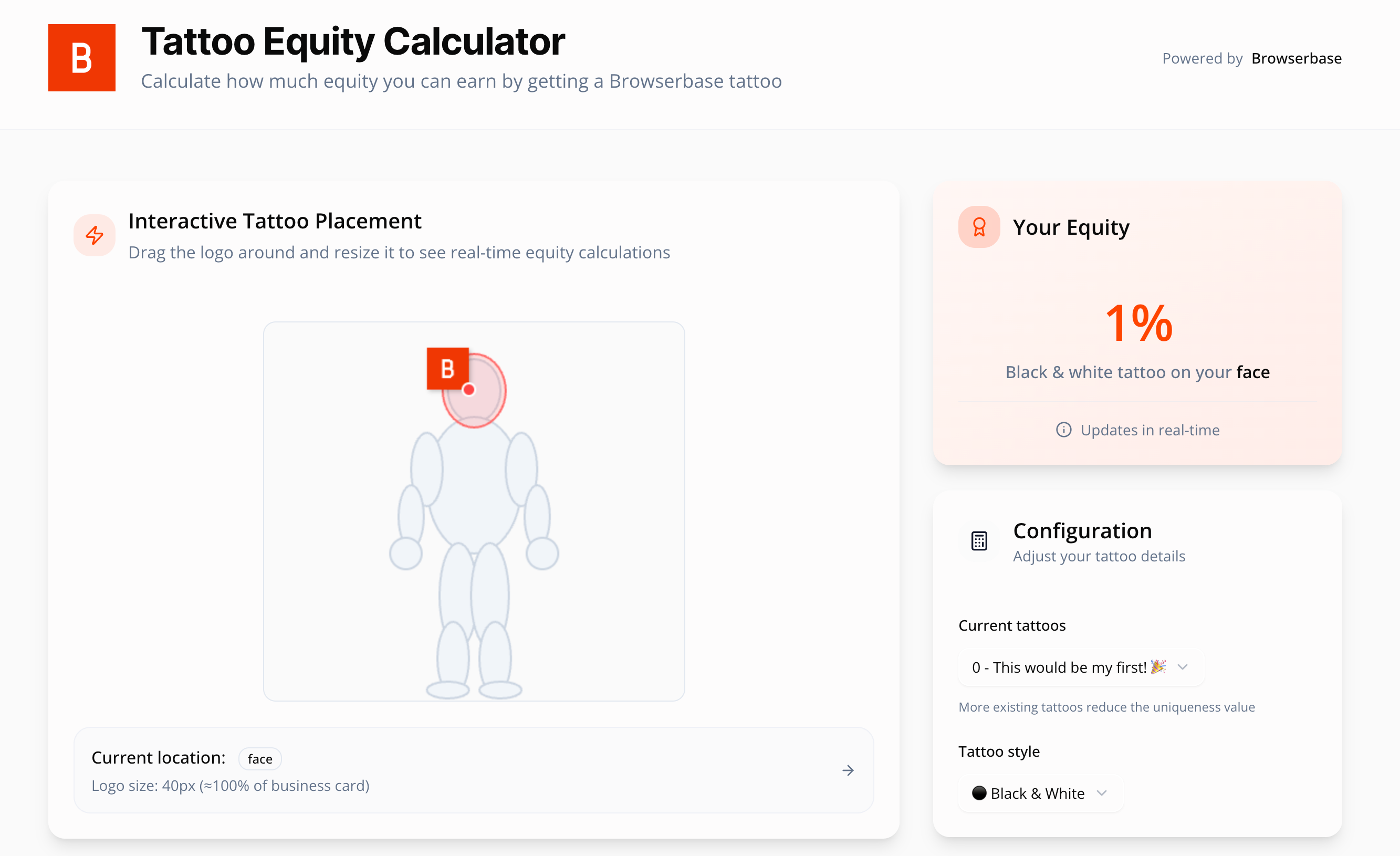 Browserbase CEO Paul Klein launched a “Tattoo Equity Calculator” last week.