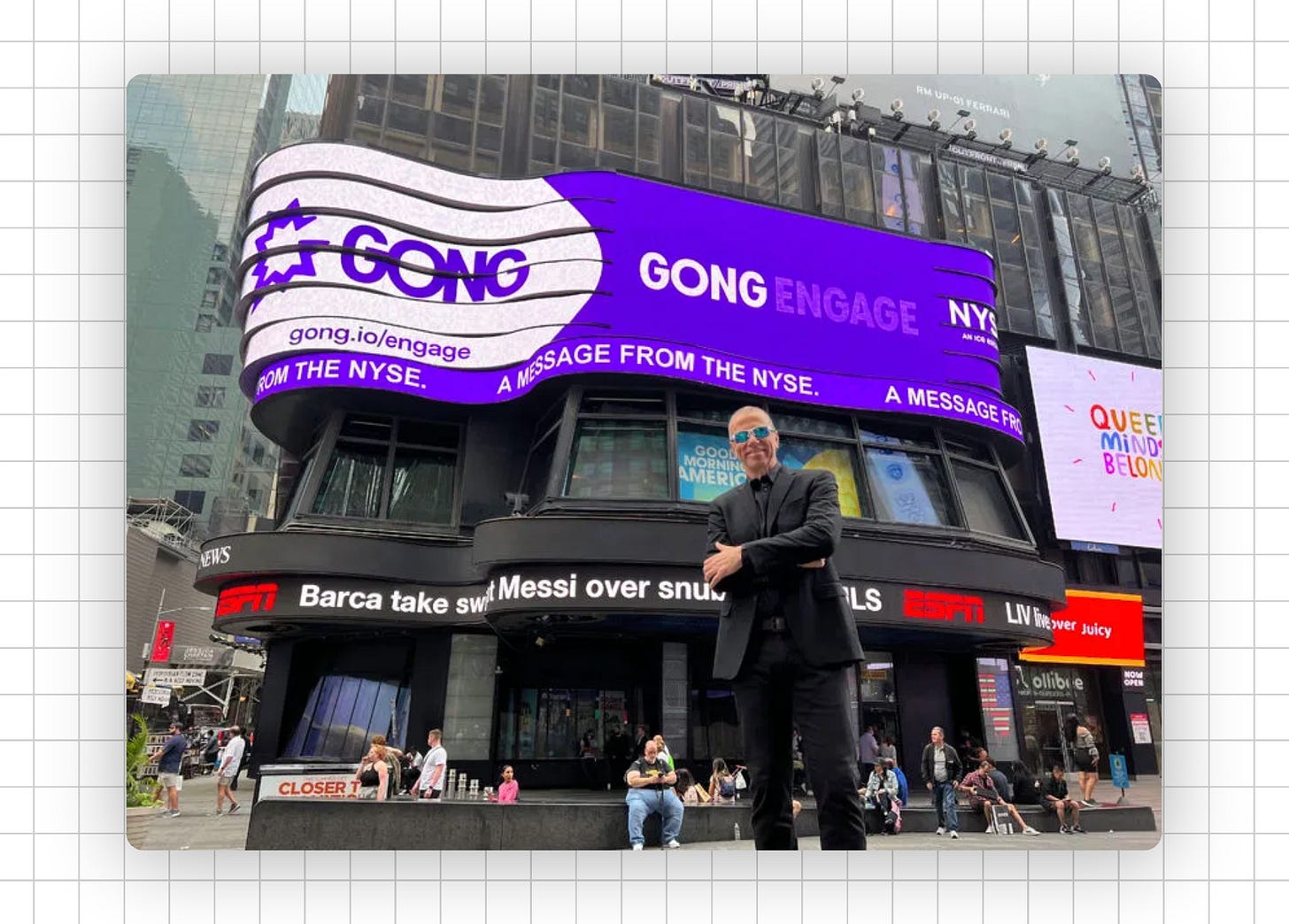 When Gong was tiny, they bought 15 seconds of Times Square billboard space for a few hundred dollars. They photographed it, made it look like a massive campaign, then amplified those photos everywhere.