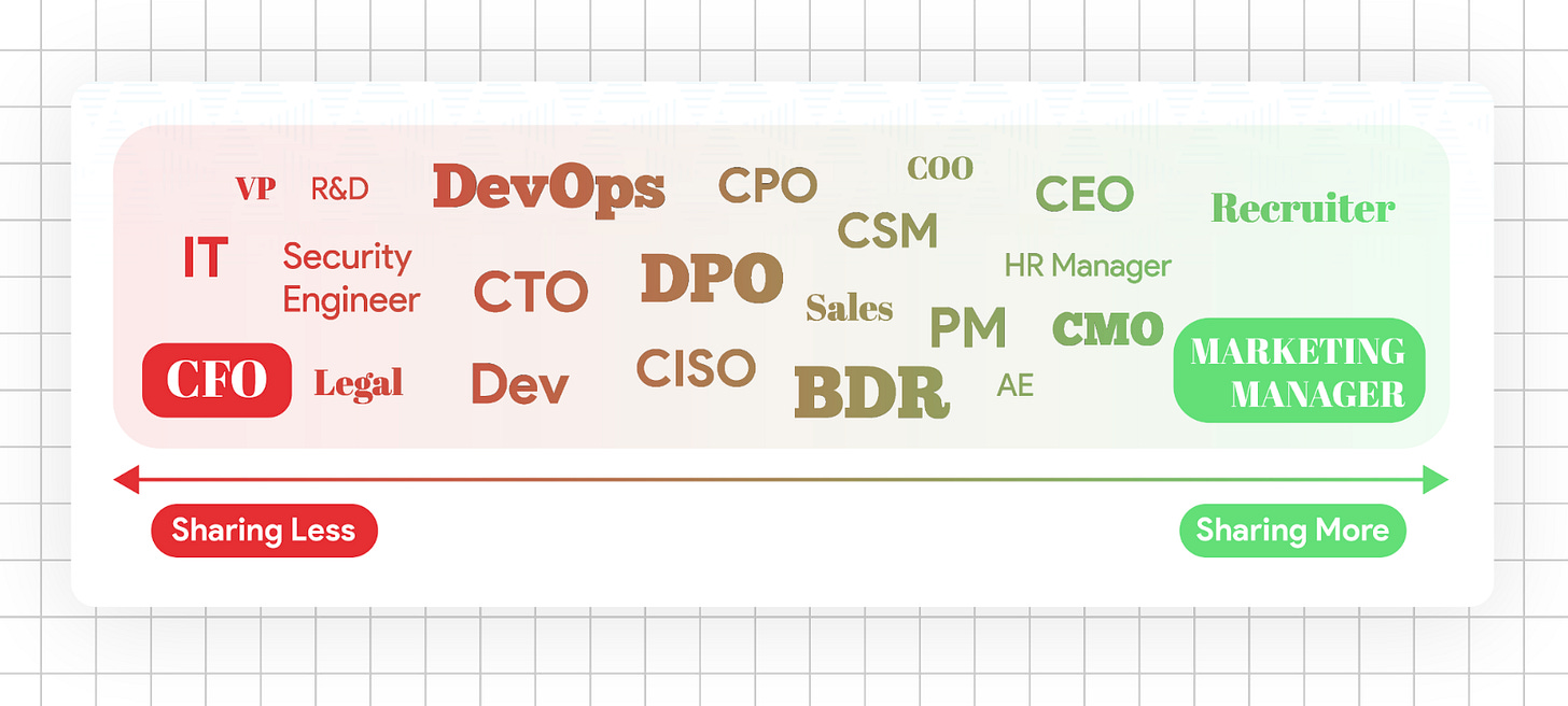 ❌ For non-sharers (legal/finance): create “Top 10” lists featuring them personally, or case studies that make them look smart to colleagues.