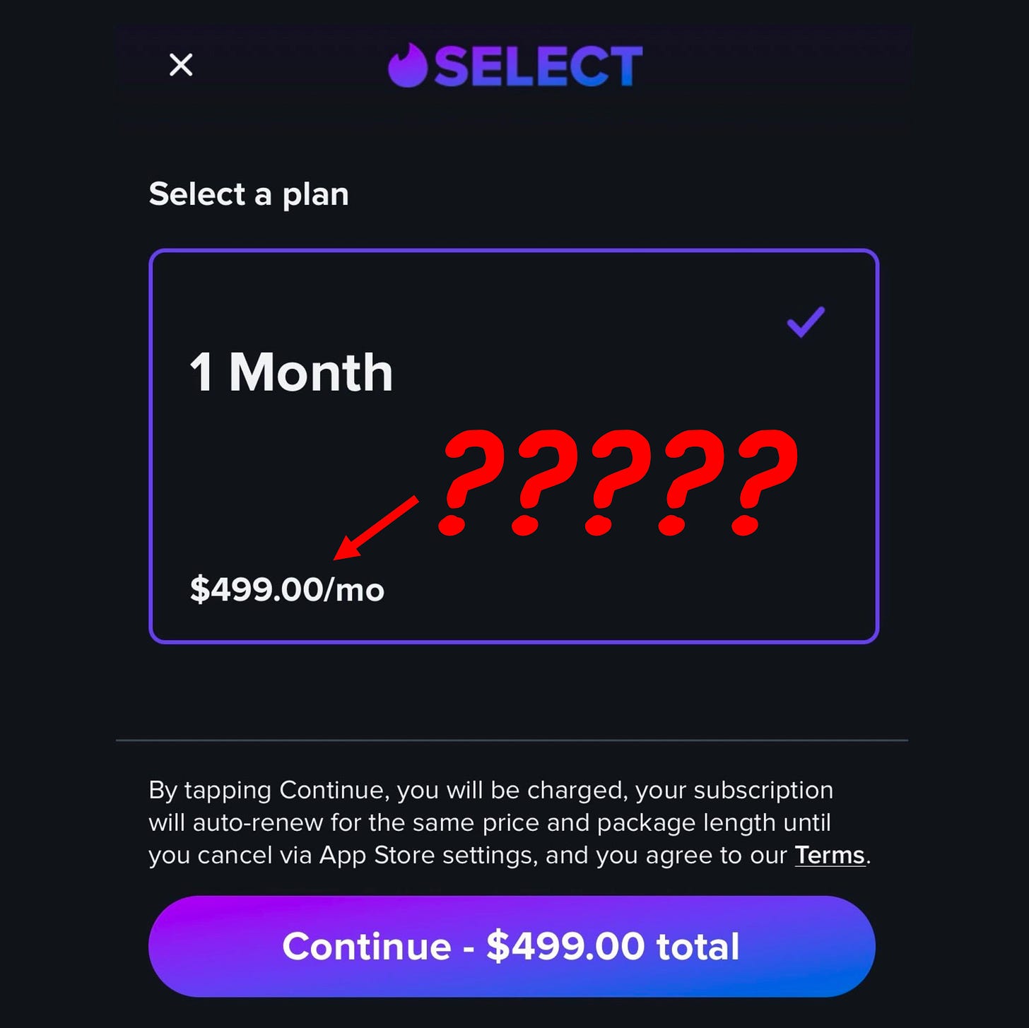 👉 This week, Tinder made waves with the introduction of Tinder Select = a prime example of an absurd pricing plan. For a whopping $499 per month (approximately $6,000 per year), users gain “VIP” privileges such as the ability to send direct messages without needing a match. But here's the catch: it's only available to the top 1% of active users.