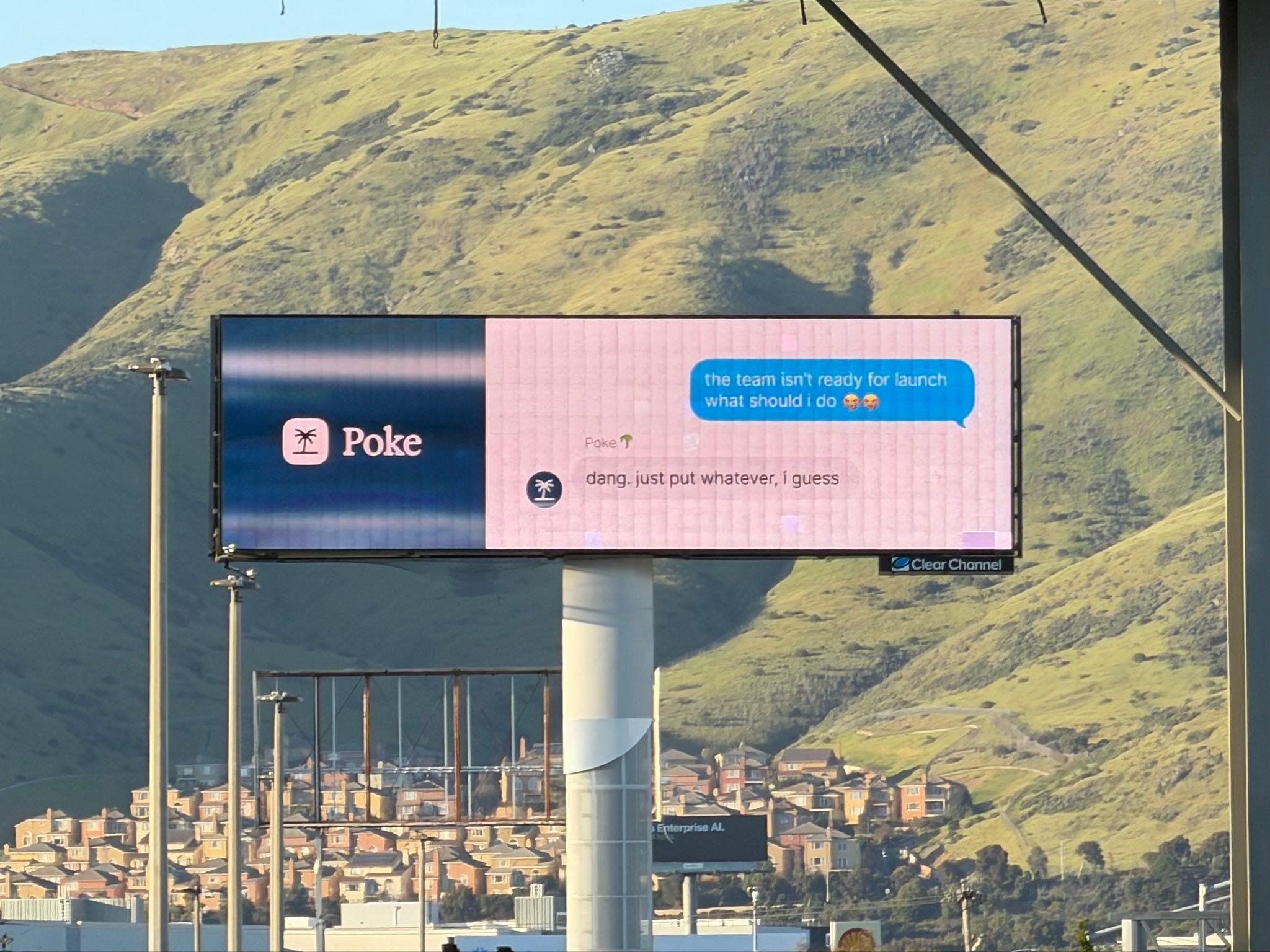 This week, the social app Poke put what looks like an internal team chat on a highway billboard.