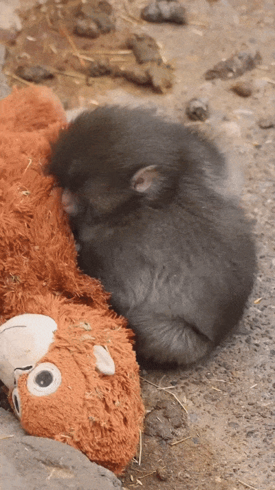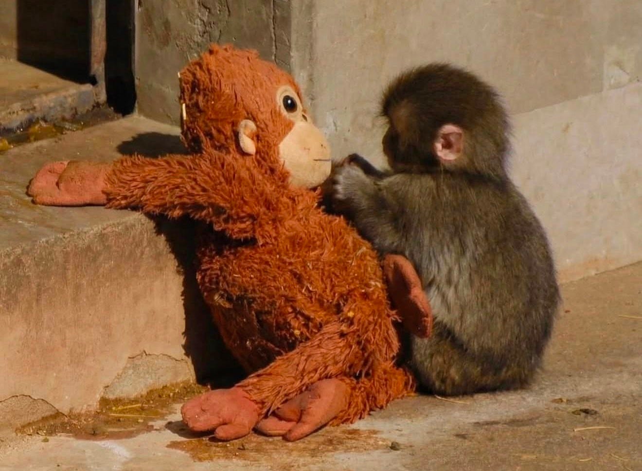 So zookeepers gave him a stuffed orangutan toy to keep him company: