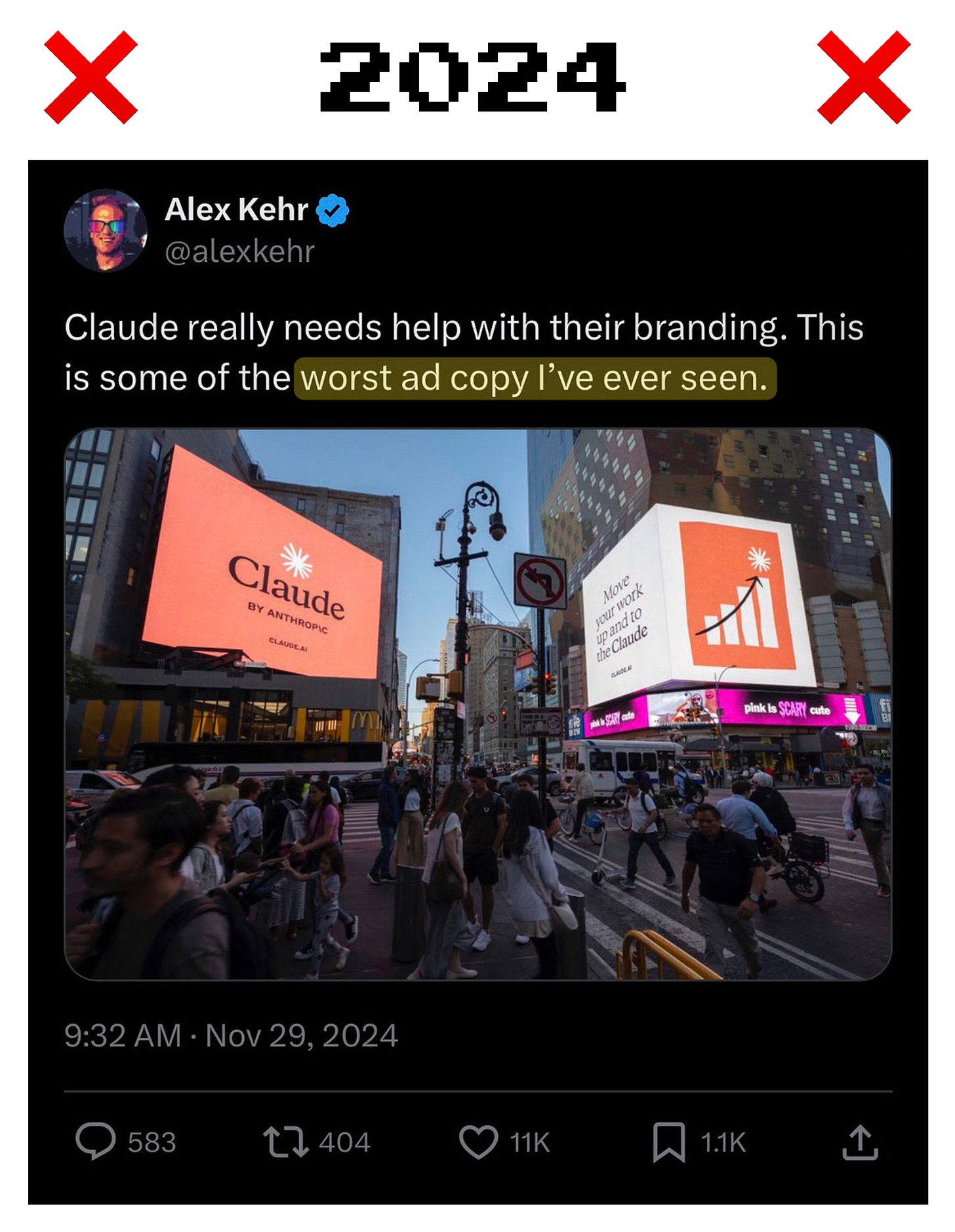 One year ago, I saw their ads at Times Square: “Move your work up and to the Claude”.