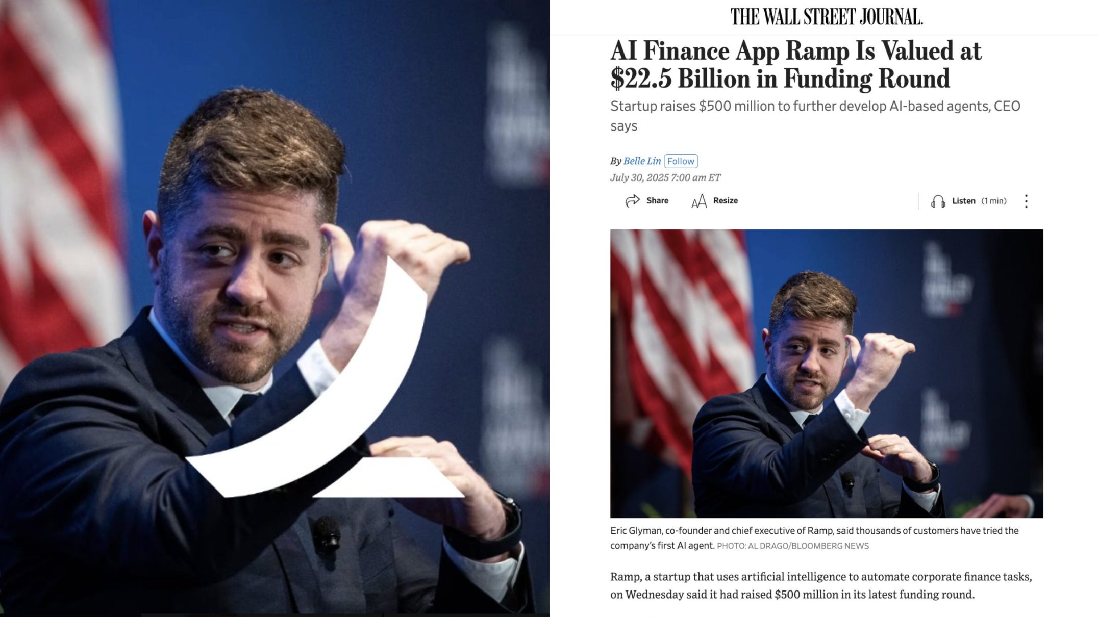 When WSJ wanted a photo of co-founder Eric Glyman → they sent one where his hand naturally formed their logo shape 🤯