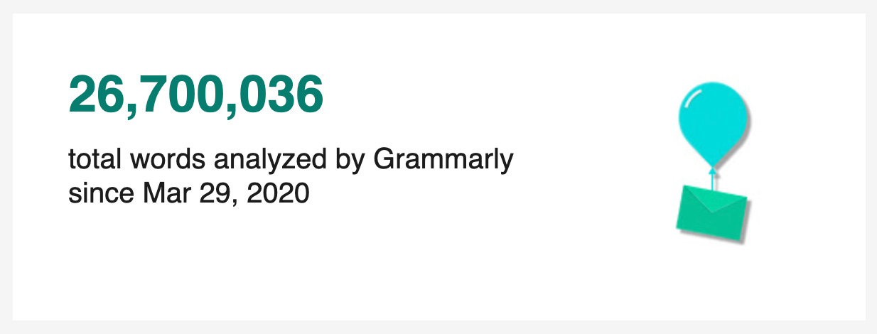 Last week, I got an email from Grammarly that said “26.7 million words analyzed”.