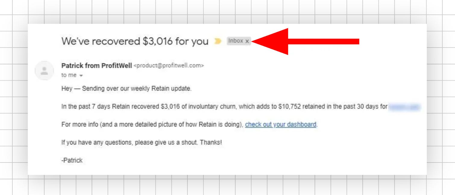 ProfitWell emails me: “$3,016 recovered from failed payments”: