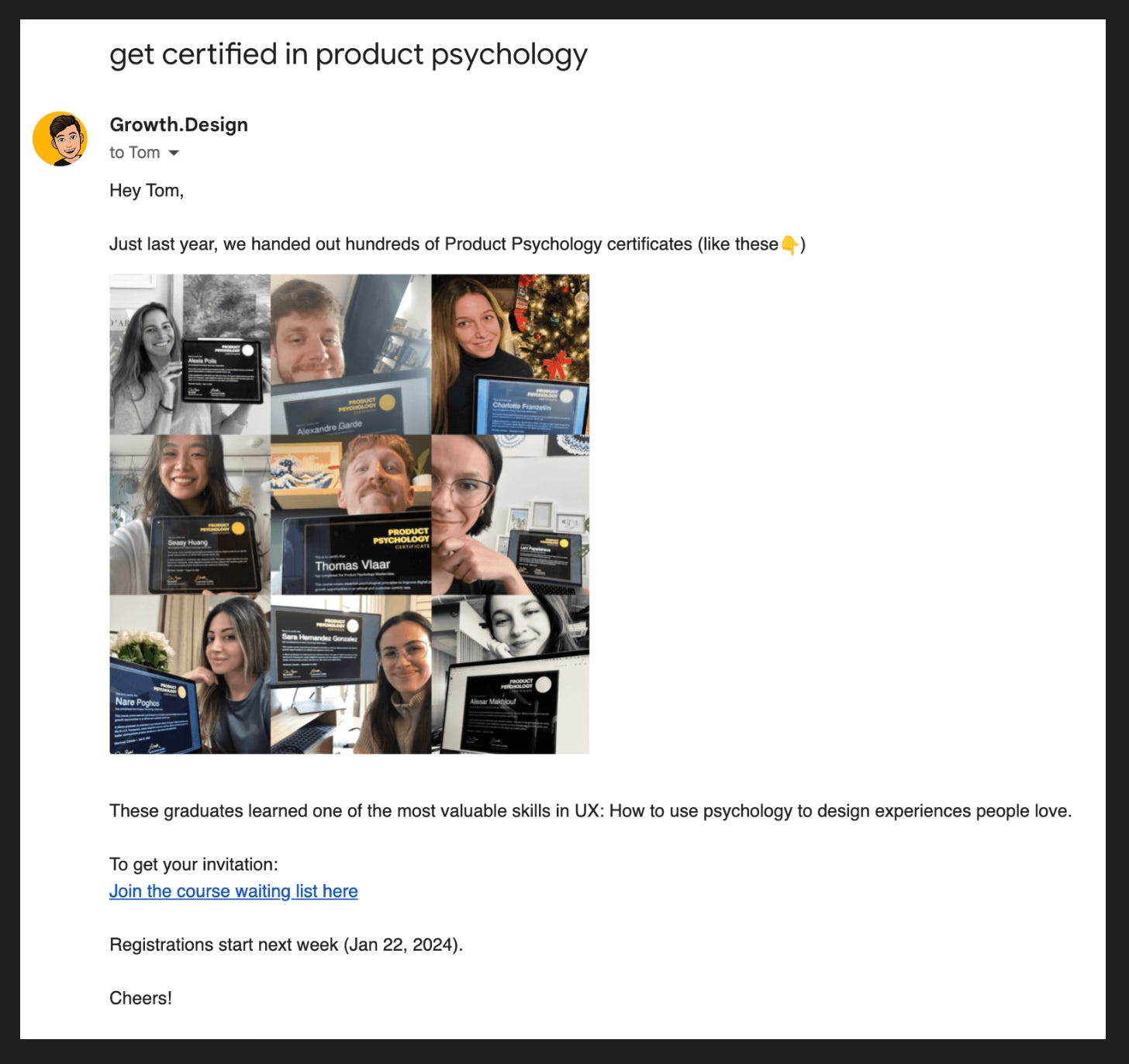 This collage of real people proudly displaying certificates creates real FOMO.